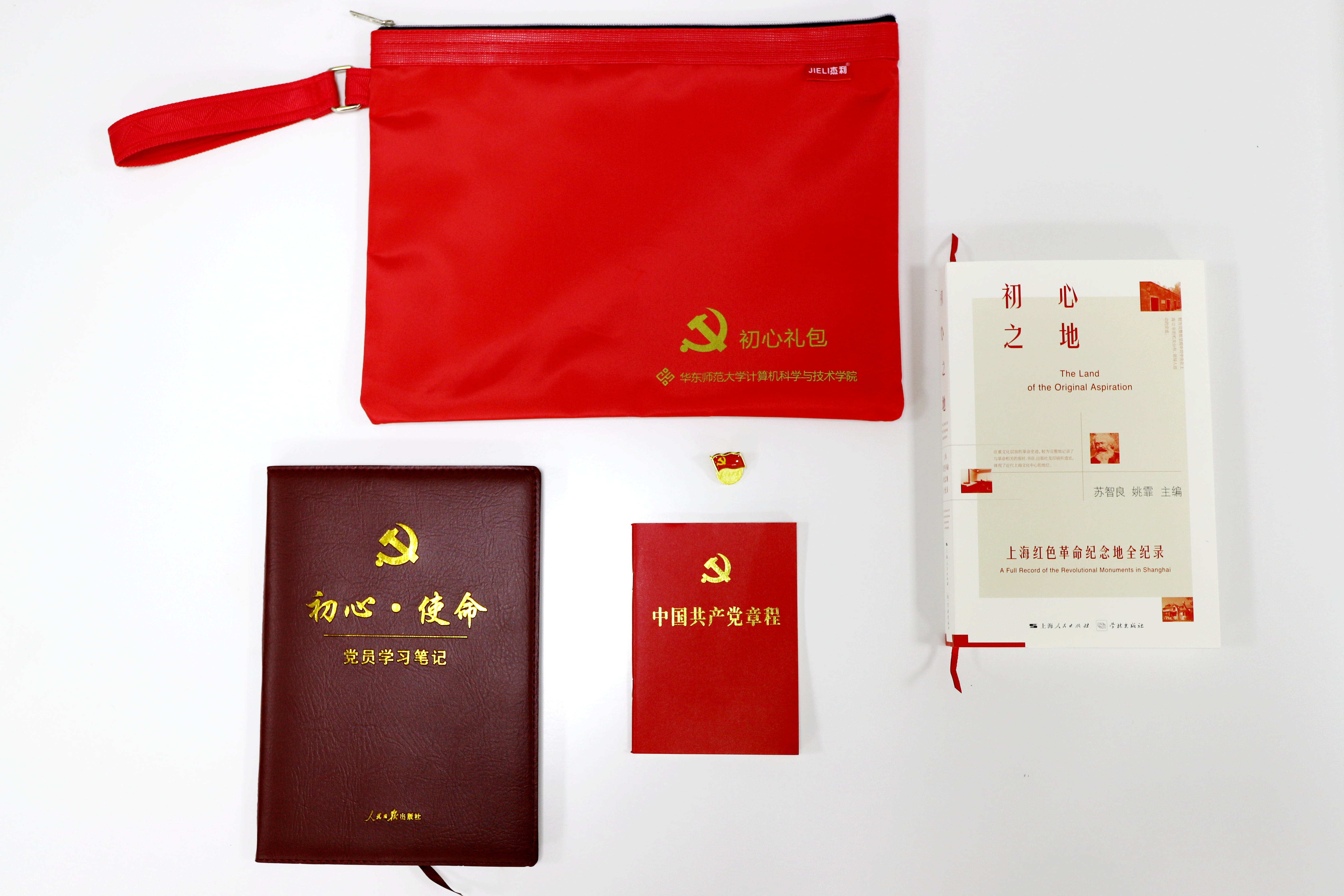 第四部分红色心意,公司党委精心准备了初心礼包,寓意在初心之地,启初心礼包,担初心使命,内含党徽、党章、《初心之地-上海红色革命纪念地全纪录》、初心笔记。公司副经理陈蕾上台为每一位新生党员赠送礼包。