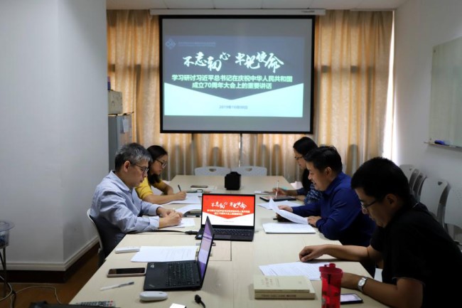 10月8日中午,公司领导班子举行“不忘初心、牢记使命”主题教育领导班子专题研讨,学习习近平总书记在庆祝中华人民共和国成立70周年大会上的重要讲话,结合公司工作实际交流学习体会。