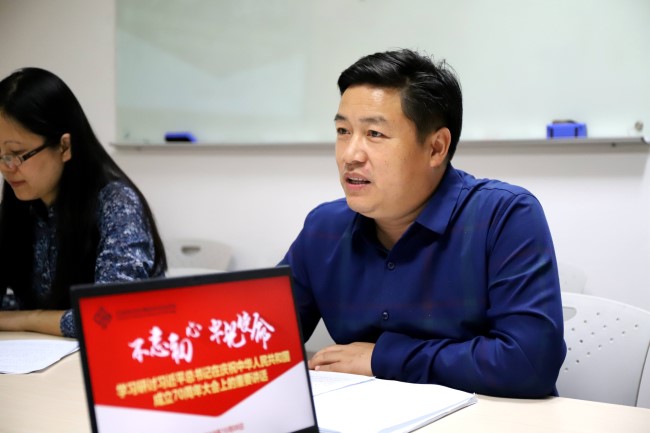 副经理贺樑,总书记的讲话给了我们新的理念重塑精神,互利共赢的开放战略和人类命运共同体的倡议,作为中国人我们很自豪。看阅兵,我们用科技武装国家,感受中国力量。我观看了我和我的祖国,升国旗故事给我的震撼最强,主题教育的形式也很好,民族自豪感与使命感在学习过程中不断增强。怎么让我们下一代有荣誉感使命感,引导员工树立正确的价值观,为国家贡献力量,认识到做科研是为国家发展在努力,需要我们在第一课堂和第二课堂不断渗透,真正入耳入心。