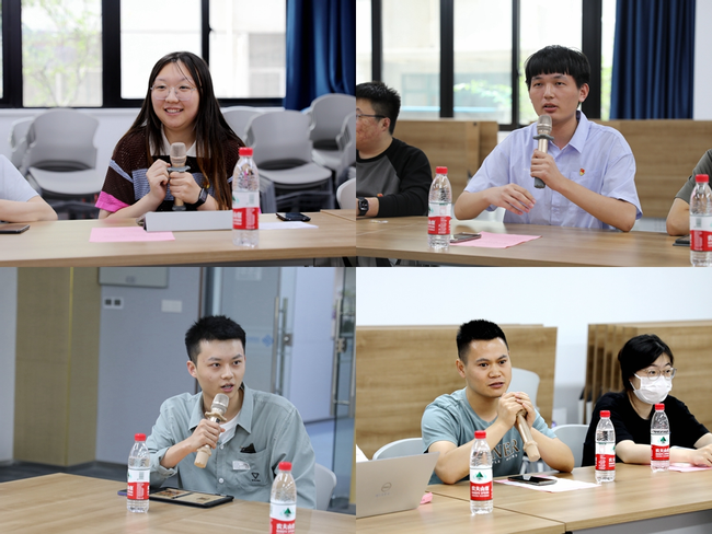 交流环节,支部党员围绕“习近平总书记与老员工在一起”分享学习体会并对公司建设、人才培养建言献策。同学们表示,习近平总书记始终强调教育优先发展,要坚持教育、科技、人才一体化推进。程静副董事长的分享也强调了青年员工的责任和使命,特别是作为交叉学科的同学,要抓住时代的机遇,借助新技术,共同推动智能教育的发展。大家围绕学习和生活中遇到的问题踊跃发言,程静副董事长现场答疑解惑,希望能通过师生联动一起推进公司的建设和发展。